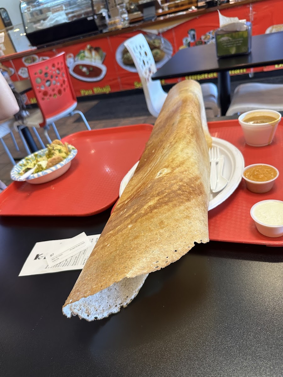 South Indian fare also shines at Shreeji, where the Onion Uttapam presents a crispy, flavorful crepe that satisfies every savory craving. The Schezwan Dosa brings a playful, enticing twist with your favorite ingredients all wrapped in a crispy shell. And don't miss out on the Medu Vada, these delightful fritters are a perfect accompaniment to any meal.